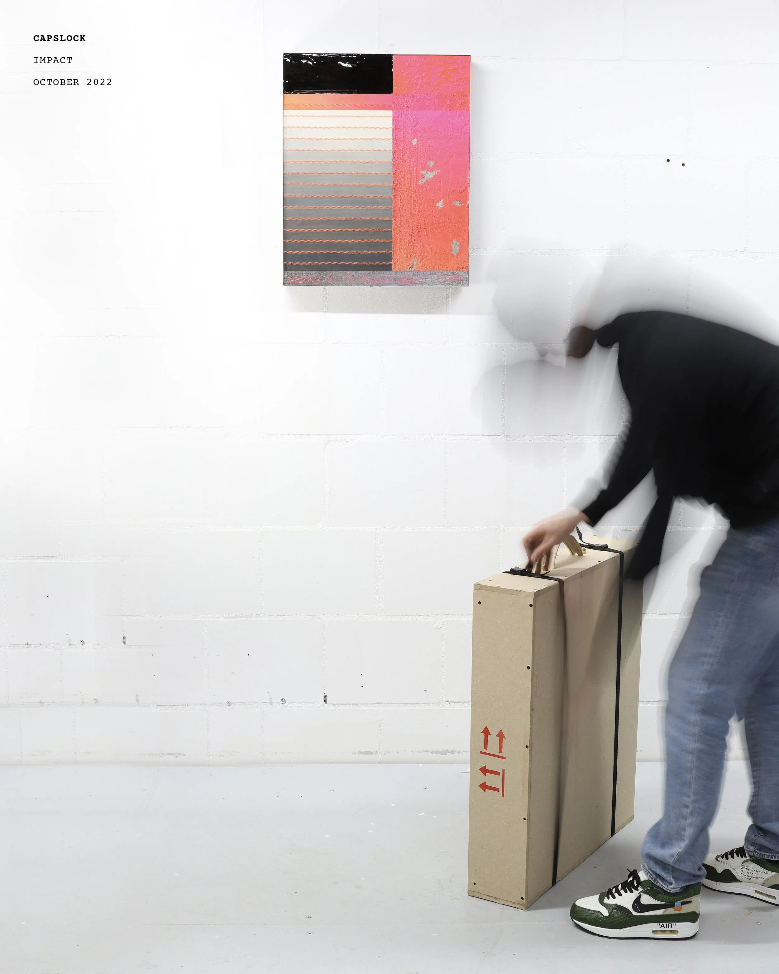 canvas, acrylic paint, patent leather, concrete, aluminium, plywood.