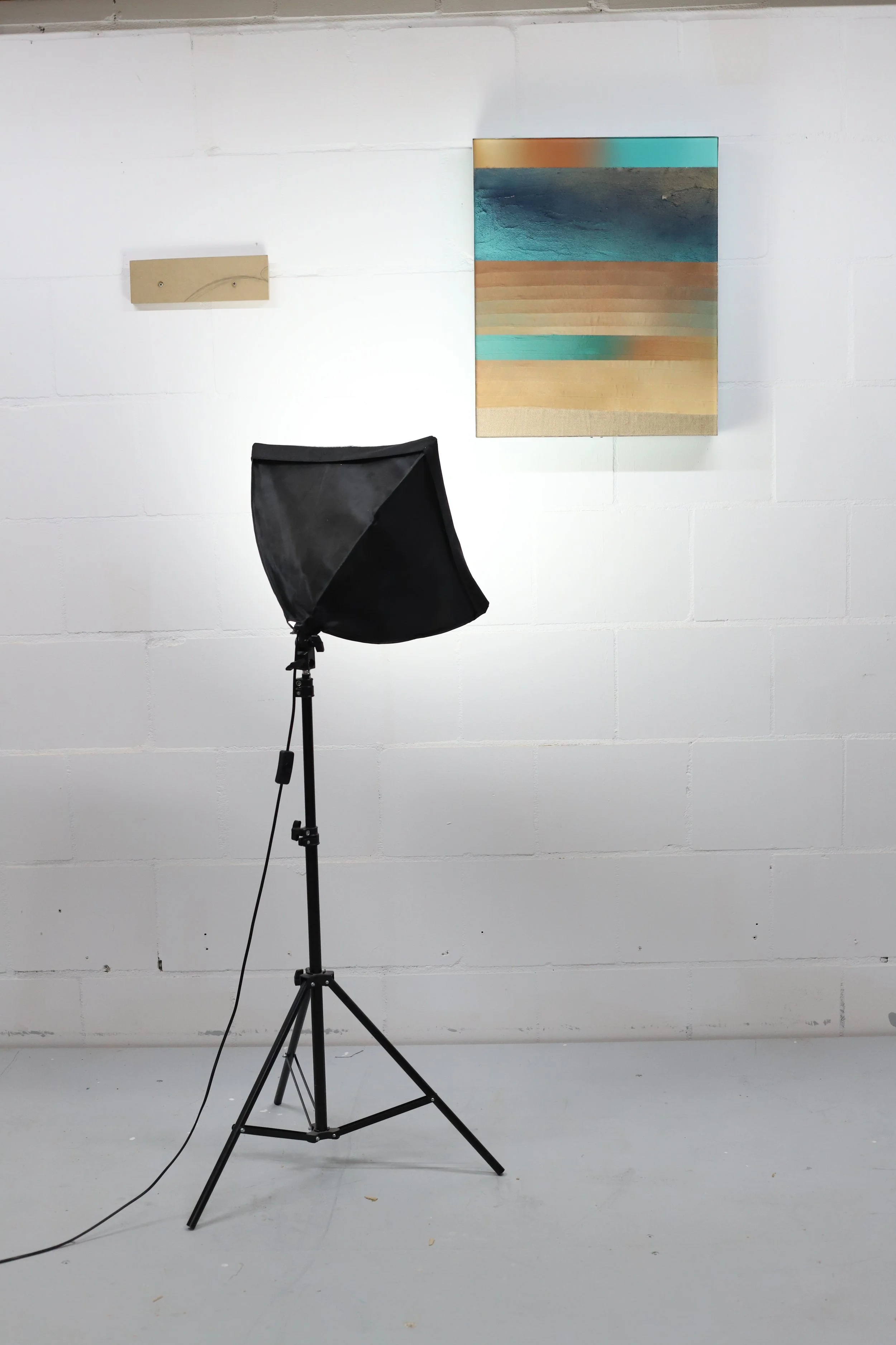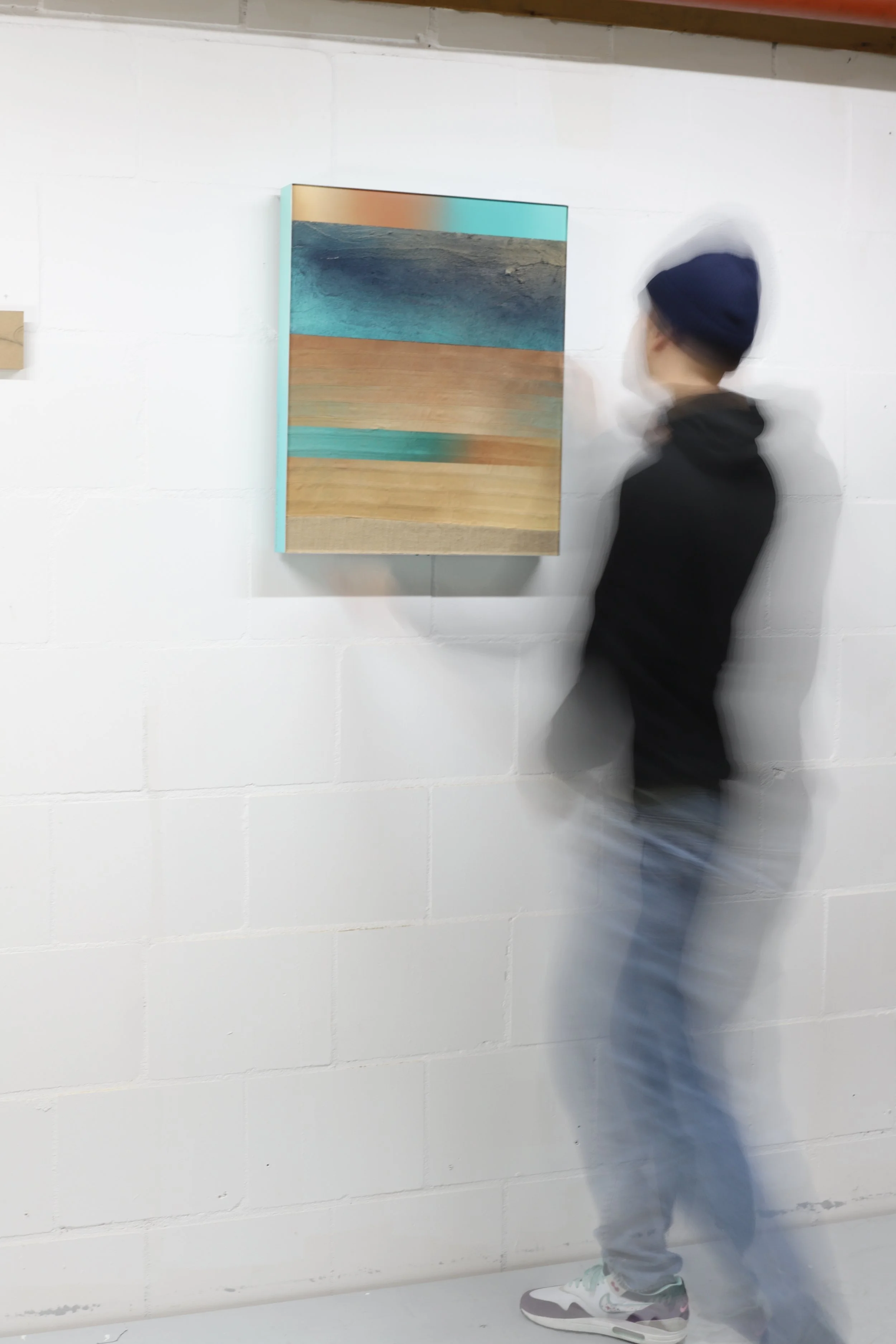 canvas, acrylic paint, burlap fabric, concrete, aluminium, plywood.